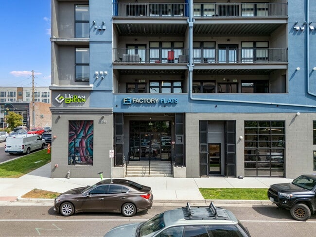 Two bedroom condo in the desirable RINO Art District. 4th floor of the Factory Flats building. Great views, balcony, parking, W/D included. Top of the line kitchen.