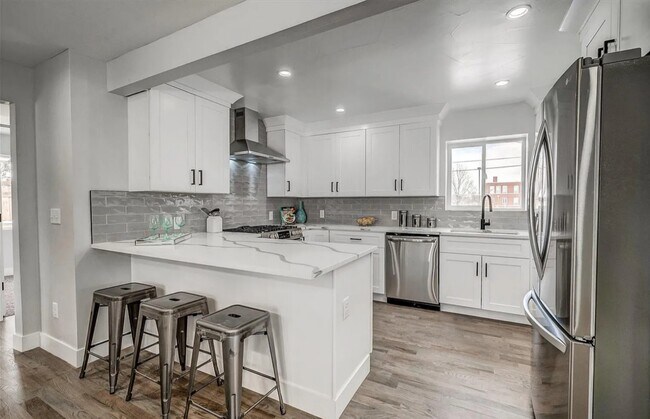 Fully renovated in 2022, ranch in North Park Hill boasts 3 bedrooms and 1 bathroom on 1300 square foot interior on a huge lot. New mechanicals, electrical, plumbing, roof, windows, hardwood floors and carpet. Smartly equipped with built in ceiling lights, cellular insulating blinds, smart thermometer and ring home security. Open kitchen and dining layout with new white shaker cabinets, backsplash, quartz countertop and stainless steel appliances. Kitchen island with counter height bar top. Spacious living room with plenty of sunlight. Central AC, washer/dryer in-unit and 2 garage spaces available.