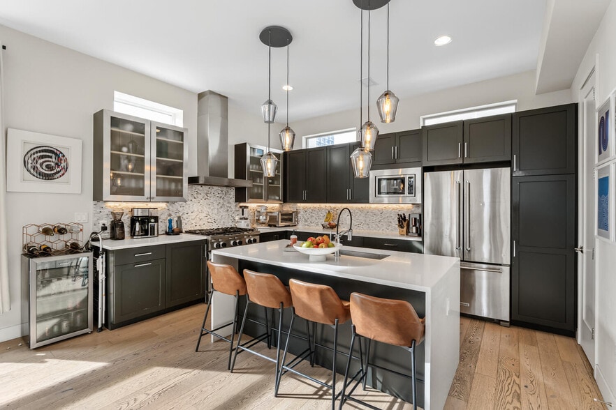Luxury living in this newer townhome only steps to Sloans Lake | Corner residence w/ only one common wall, southeastern exposure insuring loads of natural light and a large rooftop deck (mountain and city views). This stunning home offers high ceilings, three bedrooms, each with en-suite bathrooms, a modern kitchen with stainless steel appliances and solid surface quartz countertops. Elevated finishes and updating throughout: wide plank flooring, upgraded lighting, custom window sheers & up/down, custom open tread (steel & wood) staircase. Attached two car garage with ample room for storage (insulated, drywall finish and with water). Sonos systems stay. The location is ideal for local amenities, with Perry Street Light Rail, Bus Stops, Alamo Tap House, Odell's, Edgewater Marketplace and miles of Biking & Jogging Trails (not to mention Pickle Ball Courts, Tennis Courts, Picnic areas and so much more). What a great place to call home and only 3.5 miles to central Denver!