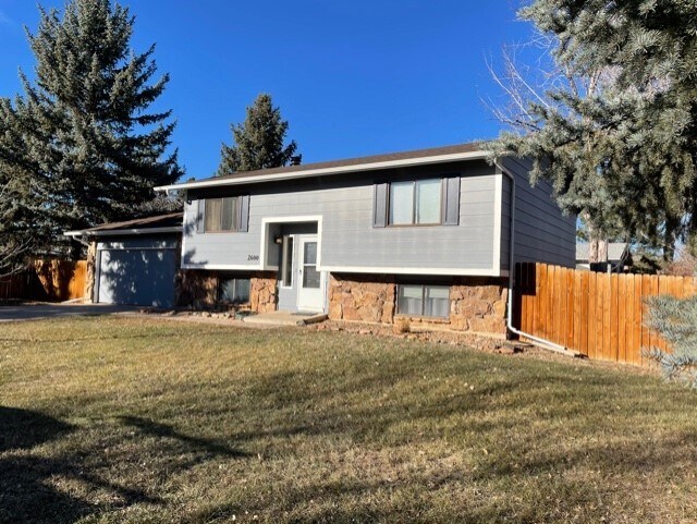 Nice sunny home on a large corner lot in a quiet neighborhood. Large fenced yard, mature trees, deck. Garage, driveway, and off street parking. First level: living room(mini split cooling), kitchen with dining area, deck off the kitchen, 2 bedrooms and full bath. Lower level: 2 bedrooms, a 3/4 bath, storage, laundry, large family rm. Large windows throughout.