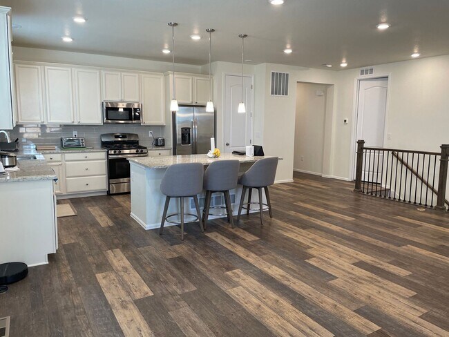 This beautiful ranch-style 3 bed 2 bath house is located in the Mosaic neighborhood in northeast Fort Collins near the intersection of N. Timberline Rd. and Vine Dr. This barely lived-in home features a spacious and open floorplan with gorgeous wood flooring throughout the modern kitchen, living and dining areas. The primary suite is located towards the back of the house and features a large, attached bath with double vanities, a spacious stand-up shower, and a huge walk-in closet. Includes Smart Home Bluetooth features for HVAC and garage opener, a full unfinished basement, attached 2-car garage, A/C, washer/dryer hook-ups, and a fenced-in backyard. Only 10 minutes from the Historic Old Town Fort Collins and minutes away from trails, dining, shopping, and numerous local breweries. this home will not last! Apply today!
