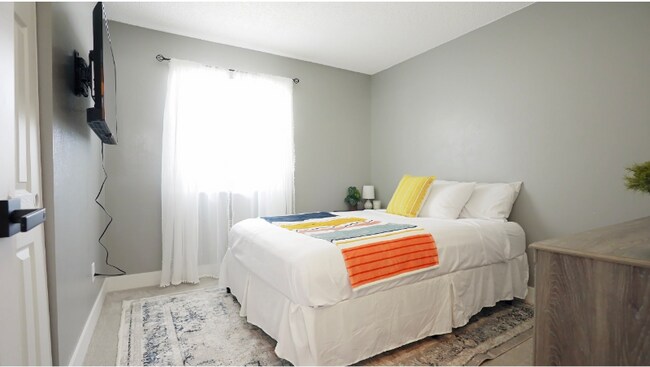 Property Id: 1415602 This room is furnished with a queen size bed, dresser, TV and closet on the upper level of this bi-level co-living home. This room is located right across from the full bathroom. Month to Month rental. Co-living home, there are multiple rooms rented in this property with shared kitchen, dining and living rooms.