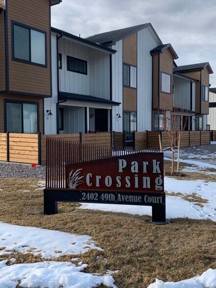 Don't miss this luxury townhouse in west Greeley's Park Crossing subdivision. This unit features high-end finishes throughout! The open-concept main floor consists of one living area with recessed lighting and 9' ceilings, a dining nook with custom lighting, and gourmet kitchen with quartz counters, 42" shaker-style cabinetry, and a stainless appliance package. Also on the main floor is a powder room and access to the attached 2-car garage. Upstairs you'll find 3 bedrooms, 2.5 baths, and a laundry area (washer and dryer included for $100/month.) The spacious master bedrooms suite features two walk-in closets, large windows that let in plenty of natural light, as well as a 4-piece private master bath with a massive walk-in shower. This unit is perfectly located within walking distance of the Centerplace Shopping Center, Highland Hills Golf Course, and Monfort Park. Don't miss it!
