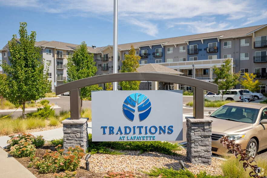 Traditions at Lafayette is a vibrant 55+ active adult community nestled in the beautiful surroundings of Lafayette, Colorado. We offer spacious studio, one-, and two-bedroom apartment homes featuring fully equipped kitchens, in-unit washers and dryers, hardwood-style flooring, and private patios or balconies. Enjoy a wide range of amenities to enhance your lifestyle. Contact us today to schedule a tour and experience the warmth and charm of our community. Max allowable income limits based on household size: 1 person $63.300.00, 2 person $72,300.00,3 person $81,360.00, 4 person $90,360.00, 5 person $97,620.00, 6 person $104,820.00. Income Minimums Qualifying Helpers: Studio Rent $1523, Monthly Income $3046. 1x1 Rent $1627. Monthly Income $3254. 2x1 Rent $1943, Monthly Income $3886.Professionally Managed by Cirrus Asset Management, Inc., CO - License # EC100041893