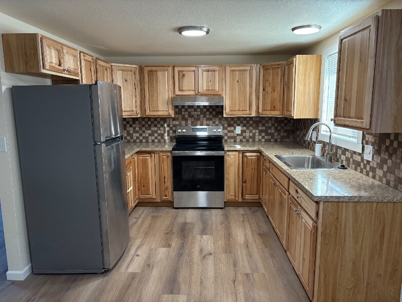 -Apartment has been fully remodeled! Brand new vinyl windows, paint, gorgeous vinyl plank flooring, oversize vanity, custom tile shower, hickory kitchen cabinets, and stainless steel appliances.