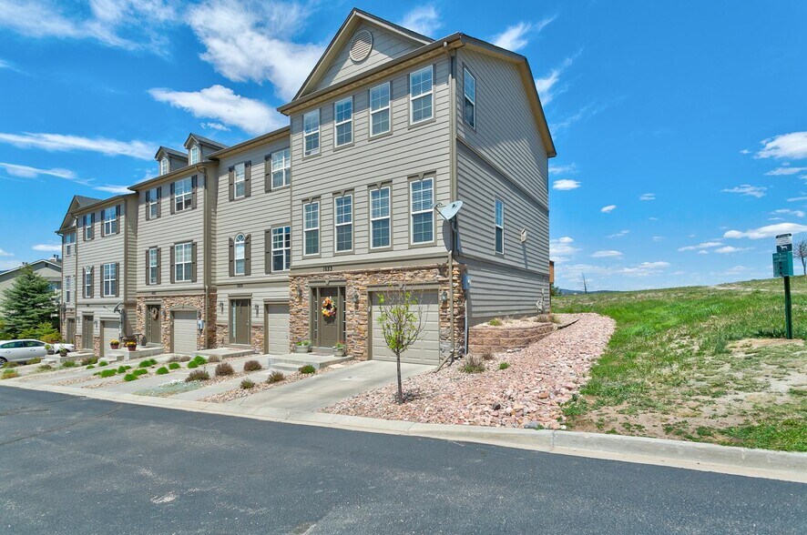 Perfectly positioned at the end of a quiet cul-de-sac in the highly coveted Woodmoor community, this end-unit townhome offers a rare blend of privacy, natural light, and sweeping Front Range views delivering a lifestyle that lives well beyond its footprint. From the moment you enter, the home sets itself apart. Expansive windows draw in Colorado's natural beauty, filling the open-concept main level with abundant light and creating a seamless connection between indoor comfort and outdoor scenery. Real hardwood flooring adds warmth and authenticity, while the gas fireplace anchors the living space offering both visual appeal and everyday comfort. The kitchen is thoughtfully designed for both function and flow, featuring stainless steel appliances, Corian countertops, a breakfast bar, and a dedicated eat-in nook. Just beyond, the private back deck becomes a natural extension of the living space, perfect for morning coffee, evening unwinding, or simply taking in uninterrupted views of the Front Range. Upstairs, the primary suite provides a comfortable and private retreat, complete with a full en-suite bath and walk-in closet. Two additional bedrooms each benefit from elevated views and offer flexibility for guests, family, or a dedicated work-from-home setup, all supported by a well-appointed full bath. The lower level enhances everyday livability with a welcoming entry, dedicated laundry area, and access to the attached two-car tandem garage, offering both convenience and valuable storage. Guest parking is located just steps away. What truly distinguishes this property is its lock-and-leave lifestyle without compromise. Exterior maintenance including landscaping, snow removal, and trash is professionally managed, allowing you to focus on enjoying the home. Ideally located just minutes from the Air Force Academy, Monument's dining and shopping corridor, and with convenient access to both Colorado Springs and Denver, this home also offers proximity to scenic hiking and biking trails, placing the best of Colorado living right outside your door. This property represents a rare opportunity: end-unit privacy, mountain views, and low-maintenance living in one of Monument's most desirable settings. Sorry, no pets allowed in this property.