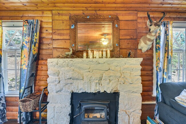 Feel at home in this newly renovated in 2024, high-end 1-bedroom, 1-bath cabin in the woods, featuring modern amenities and ultra-scenic views. This 2-story cabin requires 2 small steps and/or an exterior staircase for entry. This remote work-friendly cabin features a TV, Apple TV, VCR, DVD player and movies, Playstation, a private sauna, a rainshower/tub combo, and a wood-burning fireplace. The sunroom has 2 oversized chairs and large picture windows with mountain and forest views. You'll also find a vanity, dresser with clothes hangers, closet, books, board games, cards, and yoga mats. The kitchen is equipped with stainless steel appliances, a refrigerator, dishwasher, and stove/oven, as well as an air fryer, microwave, toaster, drip coffee maker, tea kettle (coffee, decaffeinated coffee, tea, sugar, and sugar substitute), and blender. Dishware and flatware, cooking basics, a cutting board, baking pans, a wine bottle opener, storage bags, and aluminum foil are provided. There is also a dining table with 4 chairs. Enjoy peaceful wooded surroundings with on-site walking trails and frequent deer sightings. The furnished deck offers mountain views and includes a deck cover for summertime, an updated gas Weber grill with grilling utensils, and a 4-person picnic table with a garden pergola and lights. The homeowner lives on-site next door and may be present during your stay. Exterior security cameras are located at the front and back doors facing the exterior entrances, recording video only (no audio) while guests are in residence. Quiet hours are observed from 10:00 PM to 8:00 AM. Includes a dedicated workspace with an L-shaped desk and TV/monitor. This property has ceiling fans but does not offer air conditioning. [SI]