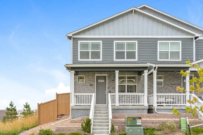 Relax on the covered front porch of this three-bedroom, two-and-a-half-bathroom rental home in Thornton, Colorado. An open floor plan consisting of the living room, dining room, and kitchen makes it easy to entertain and mingle with your favorite people. There's ample lighting throughout, including a lighted ceiling fan and vinyl plank flooring in the living room. Stainless steel appliances and granite countertops create a stylish kitchen. Sit down at the island for a quick meal. The upstairs main bedroom features an en suite bathroom that has a dual-sink vanity with storage, a walk-in shower, and a walk-in closet for easy clothing organizing. Make an appointment today to see this rental home.