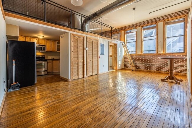 Exposed Brick walls, 12 foot ceilings, make this unit cool and hip. Walk to Metro North Train Station, the Port jefferson Ferry. Dine at downtown restaurants and go to events at Habor Yard Arena and the new Amphitheater. Walk to Seaside Park and beach or attend classes at University of Bridgeport. This unit offers a loft with a staircase that you can use to hang out or sleep, an oversized bedroom, a nook that can be used as an office. A large open space that can be a living and dining room combo. A large foyer can serve as a great space for mud room. Unit has hardwood floors
