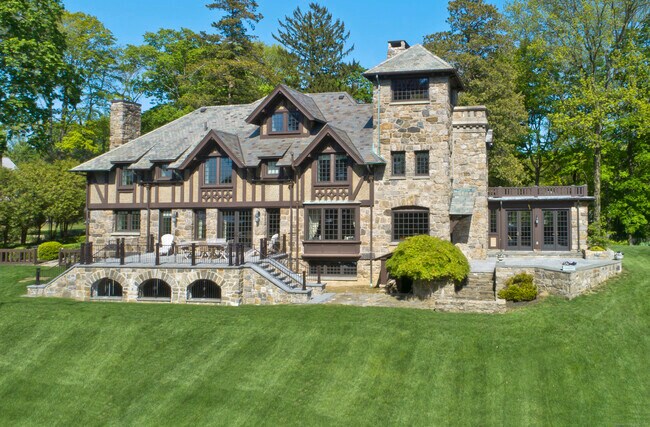 Call for Availability - A splendid long-term rental offered fully furnished, this masterfully reimagined English manor was taken down to the studs and completely rebuilt in 2014. Privately set at the end of a cul-de-sac and perched atop 2.50 acres of manicured lawns, it captures sweeping views of Cos Cob Harbor and Long Island Sound. A state-of-the-art Crestron system provides effortless, whole-house control of lighting, shades, climate, audio/visual, and security. Refined formal rooms, a bespoke gourmet kitchen, and dual terraces open seamlessly to the level grounds. The home also features a finished lower level with playroom and fitness room, a third-floor bonus room, and a fourth-floor tower room with spectacular water views. Private water access completes this exceptional offering. MLS# 24167409