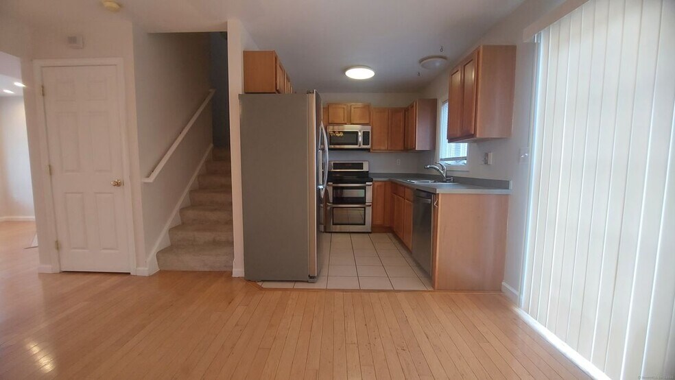adore... cozy living room w/ fireplace, galley kitchen w/ many appliances, hardwood floors and tile throughout lower level, primary bedroom with