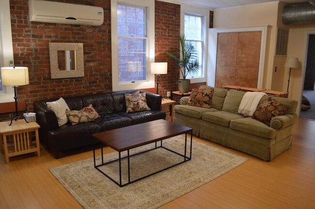 Exposed brick, lots of big windows, fully renovated 3 bedroom apartment. Includes open-plan, fully furnished kitchen/dining/living room, with a divided full bathroom (2 rooms, one with shower/tub & sink, one with toilet &sink). Central AC and heat. Kitchen has newer modern cabinetry, granite counters, a large peninsula with stools for eating, stainless steel appliances including dishwasher/disposal and built-in microwave. Kitchen, dining, and living areas are available fully furnished it can be provided also unfurnished. Plenty of storage in closets and built-in cabinetry. Bedroom #1 overlooking the street is extra large, approx 240 sf, with a total of 5 windows on 2 walls. It has one wall of exposed brick, newer Berber carpet, and a row of 3 modern wardrobes for storage. Plenty of space in this room for a bed plus desk & seating areas. Large bedroom #2 overlooks private rear courtyard, and has courtyard access directly from this room. Bedroom #2 has a large closet and a mirrored wardrobe. Bedroom #3 has large windows on two walls, rear windows overlook courtyard. Bedroom #3 has a large closet with built-in shelving. All bedrooms and living room have ceiling fans. Oversized windows and exposed brick throughout apartment add sunlight and charm. Very convenient location near (not in!) historic Wooster Square, great farm market, and walk/bike distance to downtown, the Green, Yale, and East Rock park. Easy highway access to both I-91 & I-95. Apartment has keypad entrances eliminating need for keys (bedrooms have keyed locks, if needed). On-site laundry and shared internet available for additional fees. Tenant pays for gas (heat) and electricity. Pets negotiable.