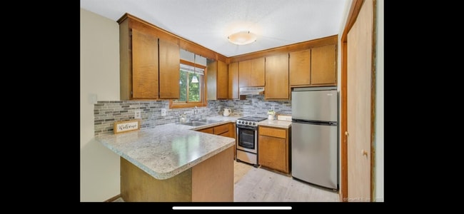 Enjoy great proximity to all amenities in this 1-bedroom, 2nd floor apartment perfectly located on the border of Plainville and Southington, which also boasts an enclosed balcony with a wooded view. The kitchen offers a breakfast bar and a large laundry closet where you will find the full-size washer and dryer. • Small dogs (**less than 20lbs**) considered. • No cats. • No smoking. • Seeking 1-year lease and good credit is required.