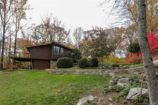 Country Contemporary with open floor plan and nice flow; tranquil setting; walls of glass with great views; Living room with cathedral ceiling, skylights and brick accent wall with fireplace leads to large entertainer's Deck; hardwood floors throughout; light and bright Kitchen with top of the line Bosch" appliances opens to elegant Dining room; Family room with another fireplace and French doors to inviting patio; good size Bedrooms; stylish updated Bathrooms with "Duravit" porcelain fixtures and "Grohe" faucets; all new made in Italy doors throughout; newer state of the art Bosch Blue Flame Boiler and new split system in every room. You will love this house updated with quality and sophistication. Flexible terms are possible. Good credit, income and references a must. Interior walls will be painted."