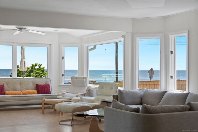Call for Availability - Light-filled Contemporary/Ranch offering breathtaking water views of the LI Sound. Embrace the coveted Compo Beach lifestyle while enjoying the spectacular sunrises and sunsets from the comfort of the sunroom or the sun-drenched deck. The open-concept layout is thoughtfully designed and bathed in natural light, with walls of windows framing the sweeping water vistas. The sleek Poggenpohl kitchen with stainless steel appliances opens seamlessly to a private rear terrace - perfect for outdoor dining and grilling - set within a secluded garden setting. The serene primary suite is a true retreat, featuring a sitting area, spa-inspired bath and its own private deck. Three additional generously sized bedrooms with hardwood floors, custom built-ins ideal for work from home needs, and another full bath complete the bedroom wing. Set on a beautifully landscaped property with an outdoor shower, this home delivers both tranquility and convenience. Ideally located just moments away from Compo Beach and Westport's premier Longshore Park offering dining, golf, pool, boating, tennis, and marina access. Minutes to the train station, and vibrant town center with all of Westport's renowned amenities. An exceptional opportunity to live, work, and unwind by the water - where refined coastal living meets timeless memories. The monthly rent of $20,000 is for a 12 month lease. Shorter term rents are Seasonally adjusted. Summer rent for June, July and August is $33,000 per month MLS# 24078871