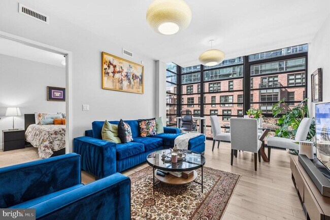 Modern luxury condo in The Bower, located in the heart of Navy Yard and one of the area’s most desirable luxury buildings. This stylish 2-bedroom, 2-bathroom unit features floor to ceiling windows, an open concept layout, and high end finishes throughout. The gourmet kitchen includes Bosch stainless steel appliances, quartz countertops, and custom cabinetry with built in pull out organizers for added functionality and storage. Enjoy the convenience of an in unit washer and dryer, abundant natural light, and sleek contemporary design. The Bower offers premium amenities including a rooftop with panoramic city views, 24/7 concierge service, secure access, and beautifully maintained common areas. Includes 1 assigned underground garage parking space. Ideally located just steps from Navy Yard Metro, Nationals Park, the waterfront, restaurants, and entertainment, with city and water views. Rent includes water, trash, parking, and building amenities. Tenant responsible for electricity, internet, and applicable move in/move out fees per condo association. EV charging available in the building. Pets considered on a case by case basis with a $500 non-refundable pet fee. Optional fully furnished rental available for $4,150/month.