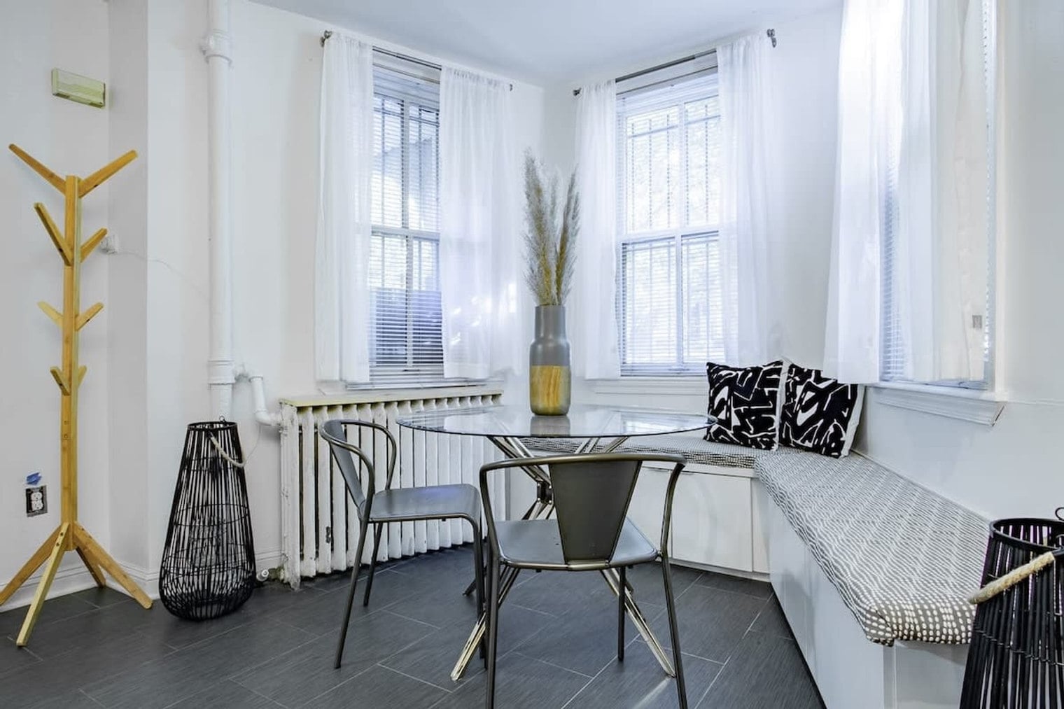 Feel at home in this chic 1-bedroom ground-level DC apartment, located just steps from the historic Logan Circle, 14th Street nightlife, and Dupont Circle Metro station. This apartment offers a sleeper sofa to accommodate two additional guests and features a lovely full bathroom with a spacious stall shower. Enjoy the convenience of high-speed Wi-Fi and a smart TV for entertainment. The apartment boasts a fully stocked kitchen and an onsite washer and dryer, providing all the comforts of home. Flexible check-in and check-out options are available upon request, ensuring a seamless stay. Situated in a central location, this designer apartment places you close to all the fun, excitement, and history that Washington D.C. has to offer. The vibrant Dupont Circle area is a hub for urban and cultural life, featuring museums, art galleries, embassies, offbeat shops, specialty bookstores, coffeehouses, and varied restaurants. The nearby Logan Circle neighborhood offers sidewalk cafés, theaters, and a lively nightlife scene, making it a big draw for nearly everyone. A family lives upstairs, and you may hear them walking around while at the unit. Please be courteous to the adjacent neighbors and the tenants living above you at all times by keeping noise volumes to a reasonable level. From 10 PM to 8 AM, adhere to strict quiet hours when noise is to be kept at an absolute minimum. Do not flush anything other than toilet paper to avoid potential repair costs. Absolutely no smoking or vaping is allowed inside the apartment, and excess cigarette waste will result in extra fees. No parties or events are permitted. [SI]