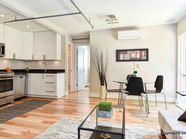 Available Jun 20, 2017. - Fully furnished 1 bedroom, 1 bathroom condo on the top floor of a 3 story building in Columbia Heights. This building was fully renovated, so all the features and appliances are modern. The property includes stylish furnishings, pull-out sofa in the living room, in-unit washer/dryer, gas stove, dishwasher, built-in speakers, 42" HDTV, hardwood floors, and modern mini-split air conditioning. Located three blocks from the Colombia Heights metro station (green and yellow lines), and blocks from bus stations heading downtown and crosstown (S2, S4, 52, 54, H4, 42). Walking distance from coffee shops, cafes, fantastic restaurants, shopping, transportation and more!  Walk Score: 97 (Walkers Paradise), Transit Score: 82, Bike Score: 84.  Click here to inquire about our property availability Please note: For stays shorter than 90 days there is a required 14.5% Washington, DC Hotel Tax due in addition to the rental amount.