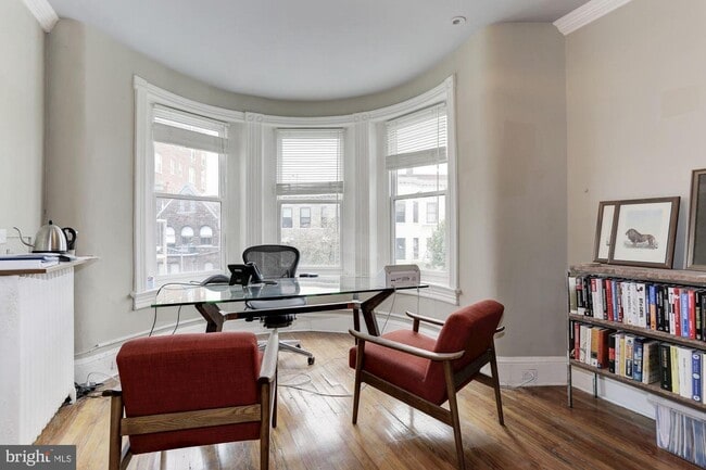 1724 Twenty is a former embassy and a historic boutique office building. It is not a co-working space or shared open space, but rather, small direct lease office space in a building among peers with some shared amenities (i.e,. conference room, bathrooms/kitchens). Suite 301 is $1495/mo and has its own exterior building signage. 1.5 blocks to Dupont metro. Perfect for 1-3 persons.
