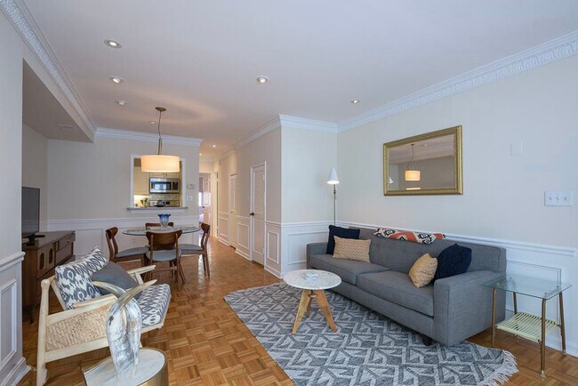 Feel at home in this sleek and stylish Dupont 1-bedroom, 1-bathroom apartment featuring a king-size bed. The sprawling and sunny living and dining area offer excellent space for entertaining or relaxing. The freshly updated kitchen boasts granite counter space, brand new stainless appliances, marble backsplash, and modern lighting. The bathroom has just been refreshed with new gleaming mosaic marble flooring. A new washer and dryer are conveniently located just outside of the kitchen, along with an oversized and incredibly useful storage closet. The freshly updated kitchen boasts granite counter space, brand new stainless appliances, marble backsplash, and modern lighting. The sprawling and sunny living and dining area offer excellent space for entertaining or relaxing. Parking is available for an additional $10 per day. This property is minutes from the Dupont Circle Metro and an easy stroll to downtown and Logan Circle. It is surrounded by coffee shops, Whole Foods, and some of DC's most highly prized dining and drinking establishments. A new washer and dryer are conveniently located just outside of the kitchen, along with an oversized and incredibly useful storage closet. Dupont Circle is a traffic circle, neighborhood, and historic district in Northwest Washington, D.C. The traffic circle is located at the intersection of Massachusetts Avenue NW, Connecticut Avenue NW, New Hampshire Avenue NW, P Street NW, and 19th Street NW. The Dupont Circle neighborhood is bounded approximately by 15th Street NW to the east, 22nd Street NW to the west, M Street NW to the south, and Florida Avenue NW to the north. The local government Advisory Neighborhood Commission (ANC 2B) and the Dupont Circle Historic District have slightly different boundaries. [SI]