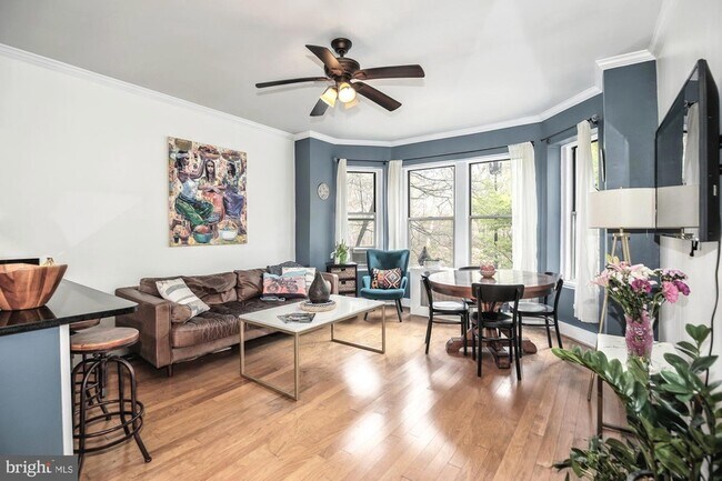 AVAILABLE FEBRUARY 1ST, this chic 2-bedroom, 1-bath gem is the epitome of comfort and convenience with a Walk Score of 94 and a Bike Score of 96! Enjoy a spacious, light-filled layout with over 900 sq ft of living space and hardwood floors throughout. An expansive entryway welcomes you home, while the two large bedrooms provide ample space for rest and relaxation. Continue on to the open living area and kitchen, complete with stainless steel appliances, gas cooking, and a convenient passthrough, making this the perfect home for entertaining. The remodeled, marbled bathroom offers a taste of luxury (note, shower glass has been added since photos were taken), and the convenience of full-size in-unit laundry simplifies your daily routine. Nestled in the heart of Lanier Heights/Mount Pleasant, this unit offers the best of both worlds tranquility as well as easy access to vibrant city life. You'll find yourself just moments away from everything you need. With Harris Teeter, Walter Pierce Park, the National Zoo, and Adams Morgan just moments away, this location boasts a full array of shops, restaurants, bars, and nightlife hotspots. Woodley Park/Adams Morgan METRO is 0.6 miles for added access to the city. Tenant pays electric, gas, cable/internet, and renter's insurance. Security deposit is one month's rent. No smoking. Gross household income must be no less than 3X the monthly rent. CATS allowed with $350 non-refundable pet fee. No dogs (ESA/service okay). $200 move=in fee to association. Application fee subject to Rentspree.