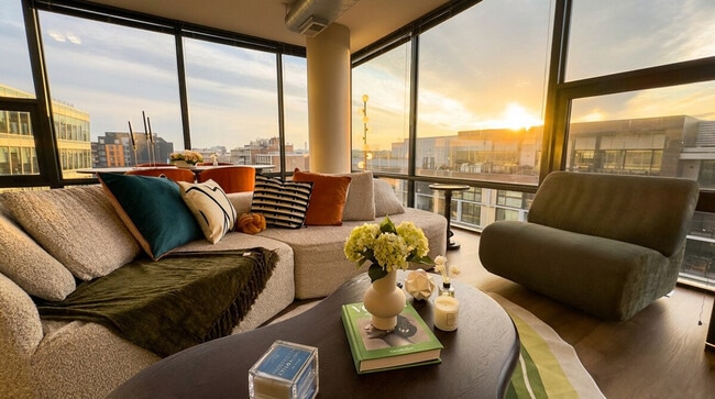 Feel at home in this stylish 2-bedroom penthouse, featuring ambient lighting and iconic Washington Monument vistas from two Juliet balconies. The open-concept kitchen flows into the living area, perfect for preparing meals or relaxing. Each bedroom features floor-to-ceiling windows. The apartment offers a luxury vibe. Pets are welcome for an additional fee; please inquire for more information. You'll have full access to the building's state-of-the-art fitness center, stylish rooftop terrace with city views, and cozy lounge area. The apartment is exempt from registration details. [SI]