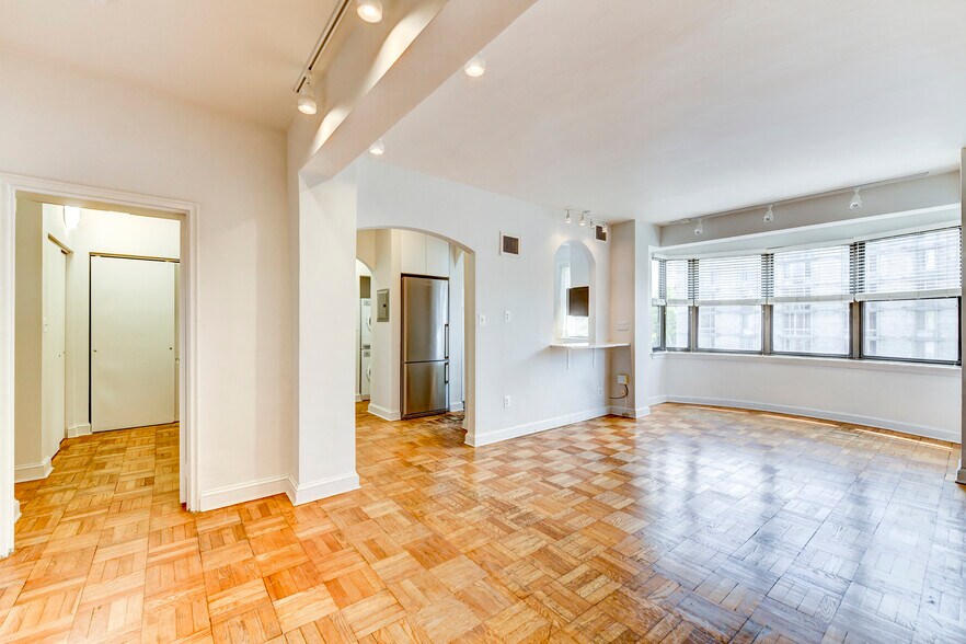 Sunny and Spacious south-facing 772 square foot one-bedroom apartment in Art Deco building in Foggy Bottom. Great for a couple who do not want to pay the price of a two bedroom but want more space than a normal one-bedroom. South facing bay windows receive lots of sunlight. Modern kitchen and bathroom with in-unit washer and dryer. Walk-in closet and tons of cabinet and storage space. Perfect walk-to-everything location including less than a five minute walk to the Metro. Easy access to G'town, Dupont Circle, Kennedy Center, GWU, restaurants, Trader Joe's, Whole Foods. Close to the Mall, White House, nature trails, boat houses & marinas. Amenities include quiet courtyard, rooftop deck w/ panoramic city views. The apartment is unfurnished. Available for rent June 1. One-year lease minimum. Utilities, (water, gas, trash collection, and electric) are covered by an additional monthly flat fee (Note: Units in the building are not individually metered for gas, electric, and water, so the flat fee covers the estimated utilities paid by the owner as part of his condo fees.)