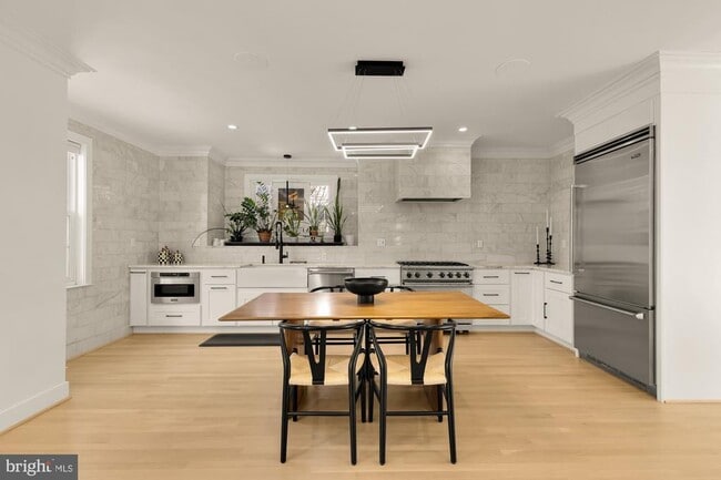 This Colonial Revival has been beautifully and recently renovated to live in a most contemporary and elegant way. It offers four bedrooms, three- and one-half bathrooms, and many thoughtful details. It is a great statement as to what can be achieved when working with talented architects and designers. Large public rooms occupy the first floor offering an open floor plan with entry hall, living room, dining room, sunroom, kitchen, and den with access to the rear garden. Three bedrooms and two bathrooms are found on the second floor, and there is an additional bedroom on the fully finished third level. The finished lower level offers a family room, full bathroom, laundry, storage room. There is the added convenience of an attached two-car garage. The rear garden is private with space for entertaining, and the front garden has been professionally landscaped and beautifully maintained. Crestwood maintains the feeling that its original developer sought to instill by way of its large and landscaped lots, wide streets, and suburban-style sensibility, all while being close to all city amenities via the Rock Creek Parkway or 16th Street.