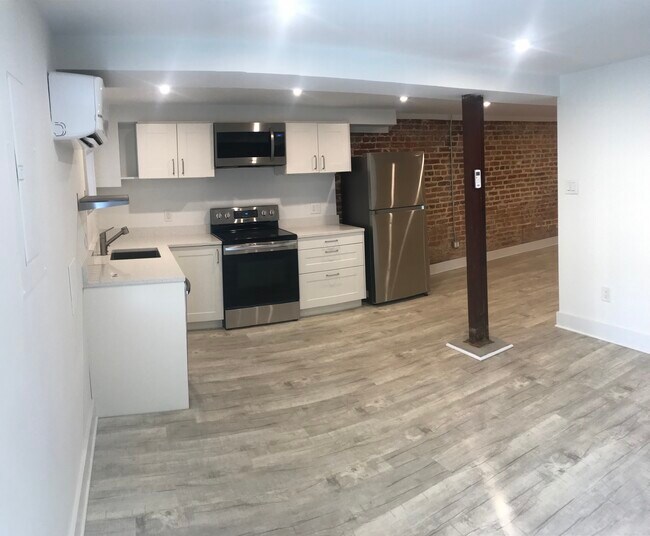 Newly Renovated One Bedroom Daylight Basement Apartment in Quiet Neighborhood, Rent Includes Off-Street Parking, Free WIFI, and Water. This newly renovated, modern one bedroom basement apartment in quiet Northwest DC Parkview neighborhood is spacious with tons of natural light. The original exposed brick brings warmth and character. The full kitchen boasts brand new stainless steel appliances, granite countertops and under counter lighting. Also included are in-unit washer and dryer, in-unit heating and air conditioning and dimmer switches throughout the apartment. You have a spacious large bedroom closet with custom Elfa shelving along with an entry way closet for additional storage space. Private entrance with private off-street parking pad. It is just a 10 minute walk to Medstar/Children's/VA medical complex or a 15 minute walk to Howard University. Columbia Heights and Petworth metro lines are also within easy walking distance. New bike lanes in front of the house give you easy access to DC and Maryland. The Petworth neighborhood is booming with new restaurants all within a 10 minute walk or hop on your bike for a 10 minute ride to great restaurants in the Adams Morgan and 14th St neighborhoods. Pets: No Pets Lease: 12 month Rent includes water and off-street parking.