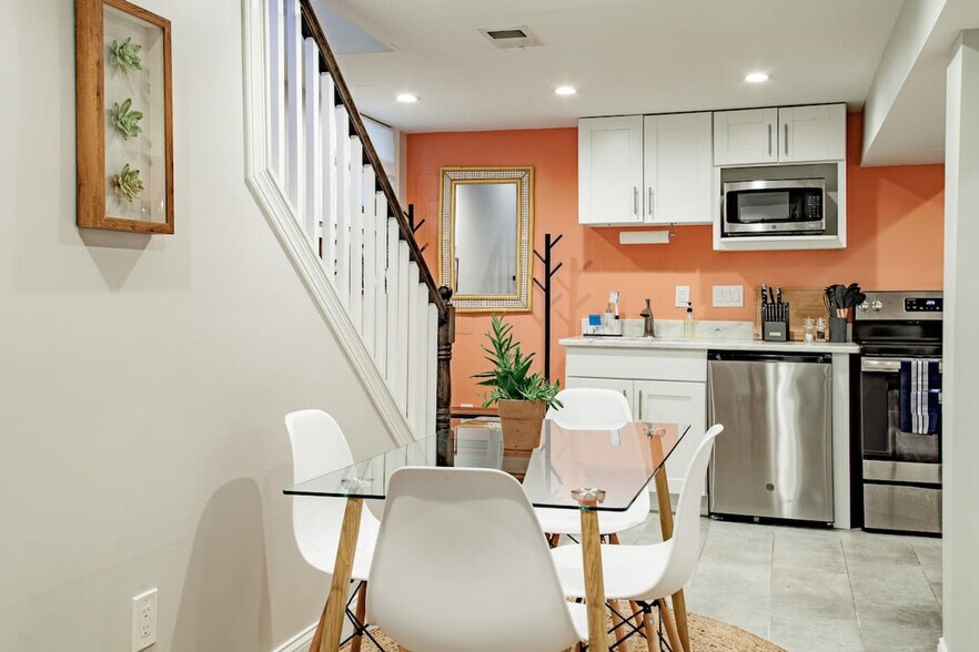 Live like a local in this quieter part of town that's still convenient to everything DC has to offer. A short 4-minute drive or bus ride takes you directly to the Metro rail subway station at Fort Totten on the Red and Green Lines. The apartment is convenient to multiple grocery stores, Walmart, and a number of great restaurants. Enjoy entertainment on the Smart TV with your Netflix, Amazon, or Hulu favorites, and stay connected with high-speed Wi-Fi. Free parking is available. All your essentials are provided, with flexible check-in and check-out upon request. Guests are welcome to enjoy the outdoor patio at the back of the home. The apartment features a full kitchen and in-unit washer and dryer, combining unique access to city living as well as green space. It is modern, comfortable, and well-appointed with all that you need for an easy and enjoyable stay in the city. Relax outdoors on the patio next to the firepit, take a walk in the park across the street, or cozy up indoors. Ideal for travelers, interns, or visitors with family nearby. The apartment is located in a friendly, quiet, and culturally diverse neighborhood surrounded by green space. It is a 1 to 1.5-mile walk to the restaurants and shopping in Takoma Park and Petworth. The Coop coffee shop is just a few blocks away. The Fort Totten METRO station is about a mile away on the Red and Green Lines, only about a 4-minute drive. There is a bus stop (K2 bus) at Blair Rd and Nicholson down the block where you can catch a bus to the Fort Totten METRO rail subway station and around town if desired. Multiple bike and scooter rentals are available nearby, with Lime, Bird, Lyft, and Uber JUMP scooters and bikes readily available on nearly every corner of the city. The sounds of everyday living can be heard at times in the apartment, as the owners live upstairs. However, they are very responsive to managing the noise level, and you can expect the home to be fully quiet after 8pm daily. There is a strict no-smoking policy, and a $500 cleaning fee will be charged immediately if traces of smoking are found in the house. This policy includes no smoking of E-Cigarettes inside the house, though you are free to smoke outside as long as there is no debris left and no fire hazard to the house and neighbors. [SI]