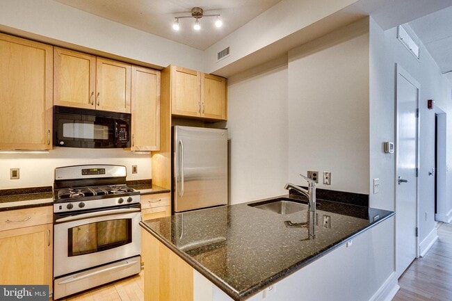**Secure garage parking is available for an additional $250/month.** Offering exceptional value and convenience, this contemporary one-bedroom, one-bathroom condominium is nestled in the heart of Chinatown and steps from the city's best dining, shopping, and entertainment. Featuring over 685 square feet and 9’3 foot ceilings of open living space, this quiet, fourth floor unit features industrial details such as exposed ductwork and concrete ceilings and supports. The efficient open kitchen features hardwood floors, a gas range, stainless steel appliances, under-mount sink with new faucet, abundant storage and oversized granite countertops which offer extra seating for a quick meal, morning coffee or to be used as an additional workspace. Adjacent, the South facing open living area with gleaming hardwood floors includes an additional floor-to-ceiling glass shelving unit. Finally, the spacious primary bedroom, perfect for a king size bed, features oversized windows that provide morning and afternoon light as well as generously sized closets for maximum storage. The primary bathroom features new lighting, ceramic tile flooring, and a large ceramic tile surround soaking tub. Chinatown East Condominiums was developed by Bundy Development in 2005 and shares its pedigree with CityCenter, CityVista and the highly regarded Conrad Hotel. With convenient access to I-395 and walking distance to numerous bus stops, Capital BikeShares and four Metro stops accessing the red, yellow and green lines, this six-story, 30 resident, boutique building is perfectly positioned close to all that the Washington, DC area has to offer. Housing vouchers welcomed.