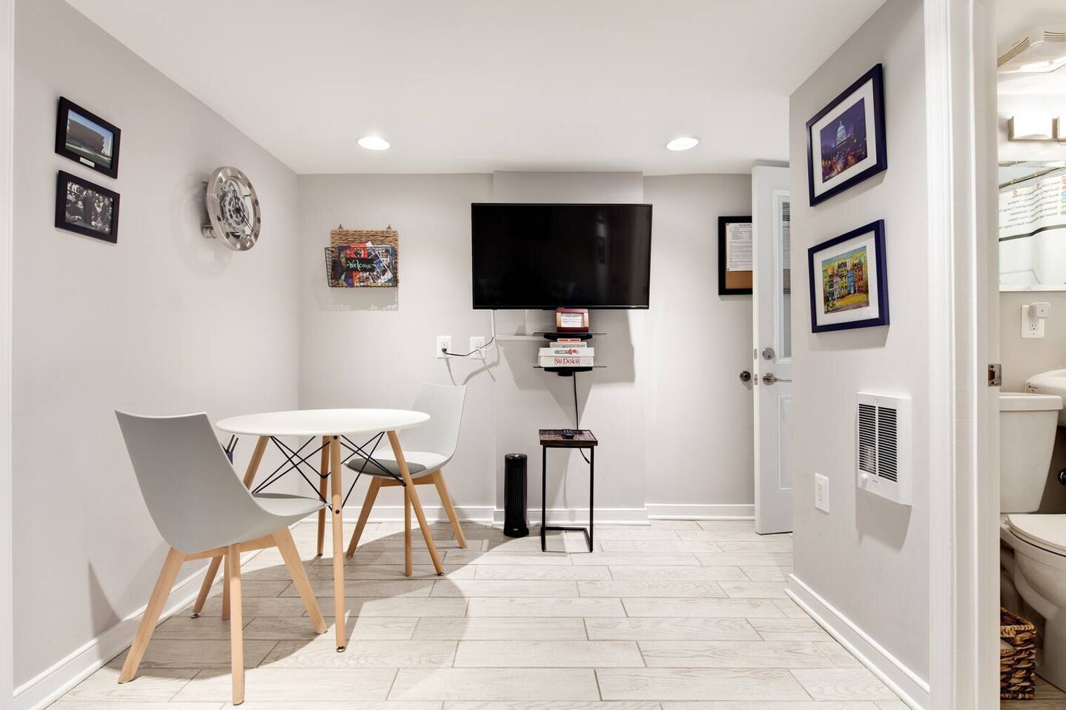 Explore DC from this lovely apartment, located just a 3-minute walk to the Georgia Ave-Petworth Metro-rail subway station, offering world-class public transit access to the entire city and beyond. Downtown DC is a mere 15-minute drive away, and great restaurants and bars are only two blocks away. Enjoy the convenience of a WiFi cafe and grocery store just half a block away, along with high-speed WiFi and a private off-street parking space. Welcome to your modern and private English basement retreat, nestled in the historic neighborhood of Petworth, just a stone's throw away from the vibrant heart of Washington, D.C. Perfect for solo travelers, business trips, or small families, this charming unit offers comfort, convenience, and unbeatable access to everything the city has to offer. Step into your private oasis, where DC-inspired artwork and contemporary furnishings create a stylish and inviting atmosphere. Relax in the separate bedroom with a cozy full-size bed, or convert the sofa in the living room into a queen-size bed for additional guests. Fresh linens, blankets, and pillows ensure a restful night's sleep. Equipped with a full kitchen, complete with modern appliances and stocked pantry essentials, you have everything you need to whip up a delicious meal or brew a cup of coffee. Stay entertained with board games, stream your favorite shows on the 40-inch TV, or simply unwind after a day of exploration. Enjoy the convenience of a private off-street parking space. Conveniently located just a 3-minute walk to the Georgia Ave-Petworth Metro-rail subway station, world-class public transit is practically at your doorstep. Explore the city with ease, whether you're heading to downtown attractions, business meetings, or dining destinations. Plus, with bike-sharing options and nearby bus stops, getting around has never been simpler. Discover the culinary delights of Petworth, with award-winning eateries just steps away. Indulge in artisanal pizza at Timber Pizza, savor tapas at Ruta Del Vino, or enjoy a cozy coffee at Qualia gourmet coffee microbrew. With grocery stores also steps away, stocking up on essentials is a breeze. Access to your private accommodation is through a shared backyard. The policy is no pets, and any service dogs you have may become distracted by the owner's dog. If you plan to bring a service dog, please inform in advance. A guest’s service animal must not be out of control, un-housebroken, left alone at the listing without prior approval, allowed into unauthorized areas, or in a public space without being harnessed, leashed, or tethered and not under the guest’s control. Smoking of any kind is not allowed anywhere on the property. Please be courteous to the neighbors by keeping noise volumes to a reasonable level. From 11 PM to 8 AM, adhere to strict quiet hours. Do not flush anything other than toilet paper. No feminine products, baby wipes, contraceptives, or paper towels should be flushed at any time. If these items clog the septic system, you could be held responsible for the cost of repair. Absolutely no parties causing excessive noise. No guests allowed on the premises that have not been added to the reservation guest count. Check-in is a breeze with keypad entry, providing you with a hassle-free arrival and departure experience. Enjoy the privacy and security of your own entrance, as well as full control of the heating and AC to ensure your comfort year-round. [SI]