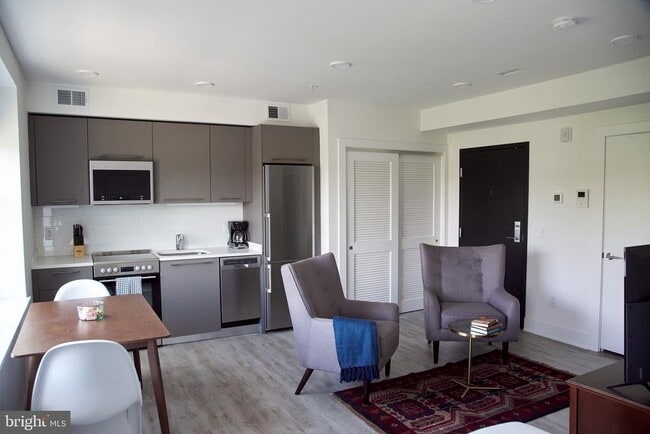Beautiful, fully equipped & furnished newly renovated/built studio apartment. Flexible lengths of stay, from 1 night to 1 year+! Features include 24-hour front desk, free high-speed internet, Roku TV, in-unit washer/dryer. Fully furnished at no extra cost and one-month free rent is available for 9+ months. All utilities included for $125 flat fee. Cleaning services on demand and secure garage parking available at additional cost. Find comfort and convenience in this luxury one-bedroom, one-bath apartment ideally located where the Navy Yard meets Barracks Row. This contemporary residence offers an open living concept, wide-plank flooring and oversized windows that flood the space with natural light. The well-appointed kitchen features European cabinets, stainless steel appliances and quartz countertops. Excellent storage with custom Elfa shelving systems and baths finished with Porcelanosa tile and Kohler fixtures, offer a clean, refined aesthetic. The building offers best-in-class amenities and services including fitness center, a rooftop lounge with sweeping city views, and 24-hour concierge service. Ideally situated just across the street from the Navy Yard and steps from the shops and dining along Barracks Row and the Ballpark District, the apartment also provides easy access to multiple transportation options with both the Navy Yard and Eastern Market Metro stations within a 10-minute walk and Capital Bikeshare in front of the building. *The rate shown is for 6-12 month stays. Please inquire about pricing for shorter term stays.