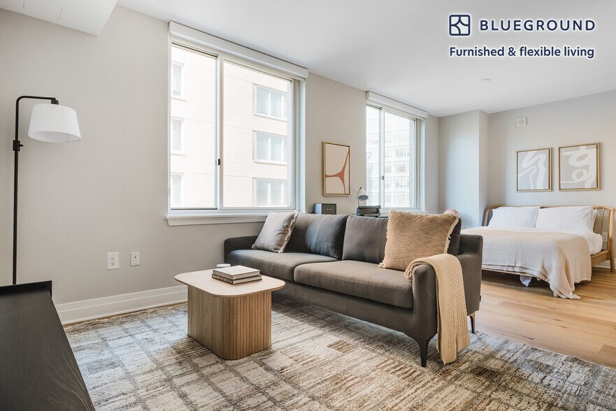 Discover the best of Washington, D.C., with this studio apartment in George Washington University. It’ll be easy to simply show up and start living in this elegantly furnished apartment with its fully equipped kitchen, charming living room, and our dedicated, on-the-ground support. (ID #WDC983) The advertised rate of $3,100/month is the lowest available price, based on a 12 month(s) stay with a move-in date of April 6, 2026. Rates vary depending on the duration of stay, season, and other parameters. For exact pricing and additional pricing components, please visit our website and enter your desired move-in and move-out dates. The rate is applicable when billed upfront; it can be higher if billed in multiple payments. Brokers are welcome to reach out. Were you looking for an unfurnished lease? Try Blueground instead and upgrade from unfurnished to furnished living: - Furnished at rates comparable to unfurnished - No setup or furniture costs - save thousands - Move-in ready - save time, just bring your suitcase Designed with you in mind Thoughtfully designed with bespoke finishes, modern furnishings, and a fully equipped kitchen, you’ll enjoy that “I’m home” feeling with this Blueground apartment. Whether you’re lounging in your charming living room streaming the latest and greatest entertainment on the smart TV or premium wireless speaker, or getting some well-earned rest on the superior quality mattress with luxury linens, you’ll fall in love with everything this George Washington University apartment has to offer. This apartment also offers in-apartment laundry. Sleeping arrangements Queen Bed, 63in/160cm Amenities Building amenities unique to this studio apartment include an on-site: - Doorman - Dryer - Elevator - Swimming pool - Washing machine - Lounge - Parking - Pets allowed - Rooftop BBQ Arrival and ongoing support The entire apartment is yours to enjoy! Throughout your stay, you’ll have access to our Client Experience team through the Blueground App. You can schedule additional cleanings, submit maintenance requests, and view our neighborhood recommendations with just a few taps. We’ll share all details upon confirmation of your stay. Other things to note Building amenities may have an extra cost. This Blueground apartment has flexible lease options, allowing you to book it for one month, a year, or more. Pets are welcome, though weight limits and breed restrictions apply and may incur fees. Parking is offered based on availability and is subject to a fee. We take great pride in ensuring every photo displayed is shot in our own units with our actual furnishings. That said, we regularly refresh our decor and furniture arrangement, which may differ from what’s pictured. [SI]