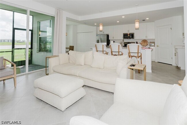 One or more photo(s) has been virtually staged,AI generated or rendered. Soak up the sunshine in beautiful Ave Maria,Florida! Welcome to your slice of paradise—this stunning 2-bedroom + den Diangelo condo offers breathtaking golf course and lake views,enjoyed from TWO screened lanais,just waiting for you to call it home. Imagine starting your day with coffee and a sunrise or winding down in the afternoon with a cold drink and a great book—pure bliss. Step inside to a spacious,open-concept layout with warm cream and beige tones that perfectly complement the lush scenery outside. And the best part? It's a highly desirable first-floor unit—easy access,no stairs,and just steps from everything you need. Got a furry friend? Pets are welcome on a case-by-case basis. Golf lovers,you’re in for a treat! Enjoy exclusive access to the prestigious Gordon Lewis-designed course,with the transfer of the golf membership! The National also features a stunning resort-style pool with a Tiki bar,a brand-new clubhouse with an incredible restaurant and bar,plus pickleball,tennis,bocce ball,a full gym,fitness studio,day spa—you name it. This is the year to treat yourself. Ave Maria ~ Once you get here,you "get it.