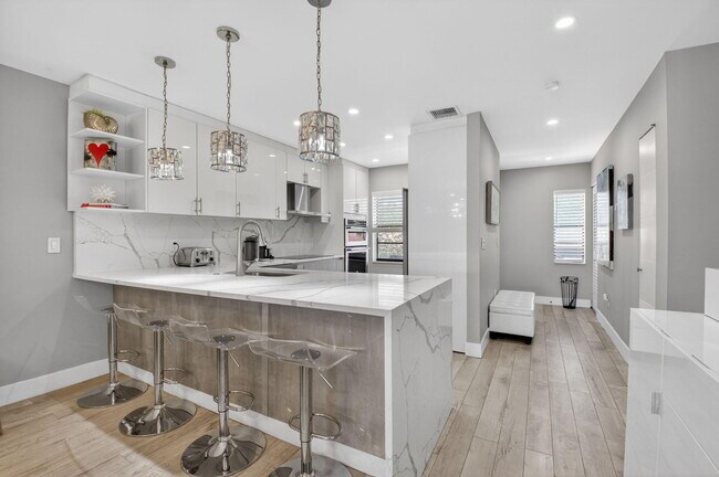 TRANSFER of LOVE ~ Exquisitely renovated 2 bedroom and 2 bathroom residence in The Pines at Boca Lago Country Club. High end finishes with designer lighting and an updated chef's kitchen with stainless steel appliances. Enjoy serene lake views from this light filled home. Gated with manned guard 55+ community offering amenities including 2 pools and clubhouses at no additional cost. Optional country club memberships available. Offered furnished or unfurnished. Cable and internet included in rental rate. Prime Boca Raton location near shopping and dining with convenient access to major roadways. A must see! MLS ID B26018618