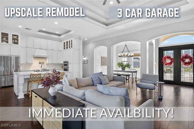 DAZZLING DIVOT DRIVE!! AVAILABLE FOR IMMEDIATE OCCUPANCY AS A SEASONAL OR ANNUAL RENTAL!! $4,500/Month Annual!! $7,000/Month for Winter Season 2026!! With its fresh upscale remodel,designer furnishings,and highly sought 3-car garage,this home is sure to dazzle you! Features include 4 bedrooms (one bedroom with wall to wall cubical storage in place of closet),2 1/2 bathrooms,thoughtfully selected high-end furnishings to custom fit each space with maximum comfort and effeciency,luxuriously renovated kitchen with KitchenAid appliances,double wall oven,custom 2-tier upper cabinets,pot-filler and 3 seat breakfast bar; gorgeous millwork throughout,luxury vinyl plank flooring throughout with exception to tile in the bathrooms (no carpet),gorgeous primary bedroom with sitting area,electric fireplace,huge closet and en-suite bathroom with jetted tub and walk-in-shower; large guest bathroom with dual sink vanity,tons of natural light throughout the home,lots of recessed lighting throughout including all bedrooms,family room feature wall with electric fireplace,designer fans and light fixtures throughout,nickel slot shiplap accent walls,2 dining areas,wonderful laundry room and so much more! Outdoors enjoy a huge,oversized driveway with room for lots of parking,covered rear lanai for relaxation,mature Clusia Hedge for ideal privacy,irrigation system sourced from a deep well saving money on the monthly water bill and so much more!! The amenities of Chadwick Square include a gated entry,community pool,exercise room,playground,clubhouse with kitchen,pickleball court and 1/2 mile loop around the neighborhood perfect for walking and tracking those miles!! This home is also set in an ideal location close to the area’s best shopping,dining,entertainment,Downtown Bonita and just a short drive to the beach!! Call for your private showing and start enjoying right away!!