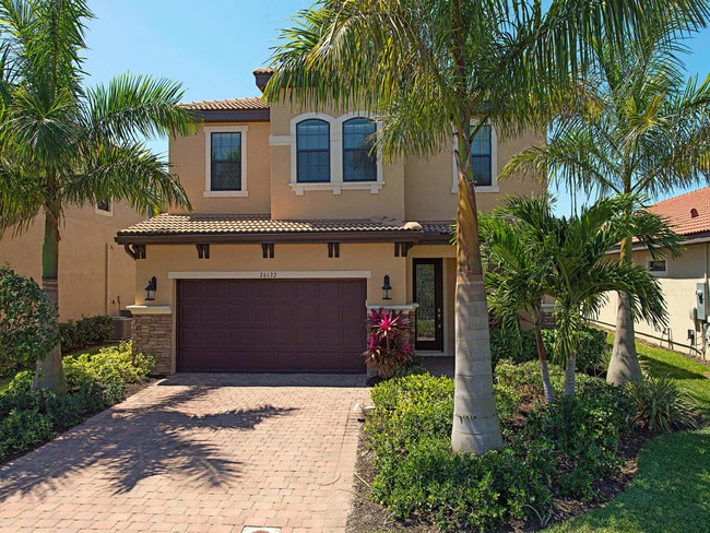 GORGEOUS 4 bedroom plus a den, 3.5 bath Single Family Home with a two car garage. This home is located in the HEART of the community. Screened in lanai over looking a gorgeous lake and fountain. 42 inch kitchen cabinets, granite counter tops and backsplash and stainless steel appliances. Diagonal tiles on the 1st floor. Master bathroom has granite counter tops and a separate tub and shower. Home is a gem and close to everything: Beaches, shopping, restaurants, airport, etc.