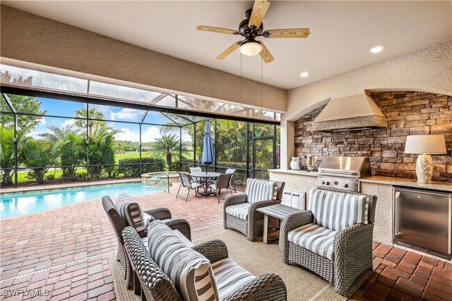 This lovely SFH (Maria floorpolan) is located in Bonita National Golf and Country Club with golf course views and 4 bedrooms,3 bath,2 car garage,private pool,hot tub,outdoor kitchen,TV and lovely sitting areas around the beautiful pool. It has 2247 square feet of beautiful furnishings and living space. Make this your home away from home with our seasonal rentals options available to you along with Golf membership and all the amenties that Bonita National has to offer you; golf,spa,pools,restaurants,tennis just to name a few. This active & social community is one you'll want to call home! Bonita National's Resort Lifestyle includes a little something for everyone. Enjoy full access to the state-of-the-art club house,resort style pool,fitness center and full-service spa. Whether you are a complete beginner or an experienced competitive player The Bonita National Tennis Center is the place to be with eight Har-Tru surface Tennis courts and onsite pro shop. Amazing location nestled between Naples & Fort Myers a short drive in either direction will take you to sun drenched beaches,exclusive shopping & dining!