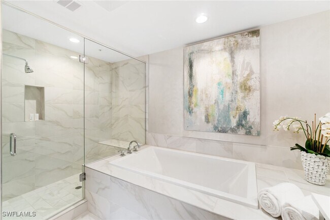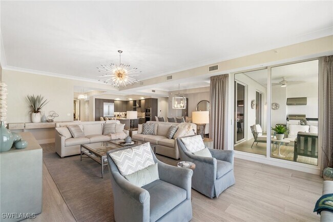 Welcome to elevated living on the 19th floor! This expansive 3-bedroom,3.5-bath home offers a thoughtfully designed split floor plan and panoramic views in every direction. This captivating luxury residence offers the ultimate Florida lifestyle,complete with stunning Gulf Coast sunsets,modern and elegant décor and an array of exceptional resort-style amenities. THE LAYOUT As you step off the private elevator lobby into the entry way,you are greeted with sophistication and modern elegance. This extraordinary luxury abode features three spacious bedrooms,three full ensuite bathrooms,powder bathroom and an awe-inspiring western exposure that bathes the interior in natural light. The great room and primary suite showcase spectacular year-round sunsets through floor-to-ceiling windows. The living room is both generous and cozy,with a sitting area that looks out over the shimmering Gulf of Mexico. Sliding glass doors in both the dining room and primary bedroom lead seamlessly out to the lanai—ideal for entertaining or simply soaking in the breeze. The gourmet kitchen is a chef’s delight,outfitted with high-end Thermador appliances,including gas cooktop. Transform your culinary desires with assorted cookware,dishware,utensils,wine glasses and more. The large balcony affords a remarkable outdoor kitchen with gas grill and intimate dining area that makes every gathering a memorable experience. Located in the heart of Bonita Springs,Bonita Bay is perfectly situated west of 41,close to renowned dining and shopping destinations like The Promenade at Bonita Bay,Coconut Point Mall,and Mercato in North Naples. Plus,you're just a short drive from Fort Myers Int’l Airport (RSW) for easy travel connections. COMMUNITY AMENITIES Experience the ultimate in Florida living within this gated community,offering 12 miles of scenic walking trails,four picturesque parks,kayaking,canoeing,bocce ball,pickle ball and tennis courts and the waterfront dining of Backwater Jack’s Restaurant. Bask in the Florida sunshine at Bonita Bay’s Exclusive Private Beach Park on Bonita Beach. A vibrant calendar of social events enhances the community atmosphere,making every day feel like a retreat. Within Seaglass at Bonita Bay,enjoy exclusive five-star amenities including a resort-style pool and spa,outdoor seating area with fireplace,state-of-the-art fitness center,billiard room,movie theater,additional guest suites & much more!
