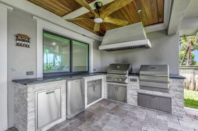 ---- SCHEDULE A SHOWING ONLINE AT: ---- Gorgeous custom lakefront property in Boynton Beach with expansive water views! Bring your boat! This home offers 4 Bedroom -3 Bathroom and a 5th room/den, under 2753 living sqft, boasting exquisite tropical landscaping, covered outdoor area with summer kitchen, new 75ft dock with boat lift, and a private beach. Recently renovated, the home boasts a 2015 concrete tile roof, 2015 AC, full electrical upgrade, PGT impact glass throughout, and the perfect open layout with breathtaking waterfront views in each room. COURTESY OF United Realty Group Inc.