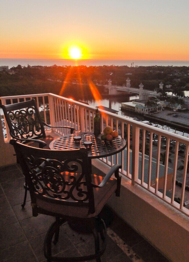 Off Season Rental: 2/bed/2bath - Enjoy GLORIOUS SUNSETS OF THE INTRACOSTAL WATERWAY FROM YOUR VERY OWN BALCONY LOCATED ON THE 15TH FLOOR-LOWER PENTHOUSE LEVEL. Only steps away from the Marina, and 2 Iconic Restaurants on the water - Two Georges and Banana Boat. Updated open kitchen equipped with stainless Steel Appliances and Granite Counter Tops with an open floor plan for entertaining. Full size W&D,and AC are only about 2 years old. Great view of the Resort Style Pool, Computer workspace in the main bedroom. Wi-fi and basic Cable is included in the rent. Marina Village affords countless other amenities: Private Lounge, theater room, billiard room, gym & walking trials overlooking the the Intracoastal plus 24 hour concierge.