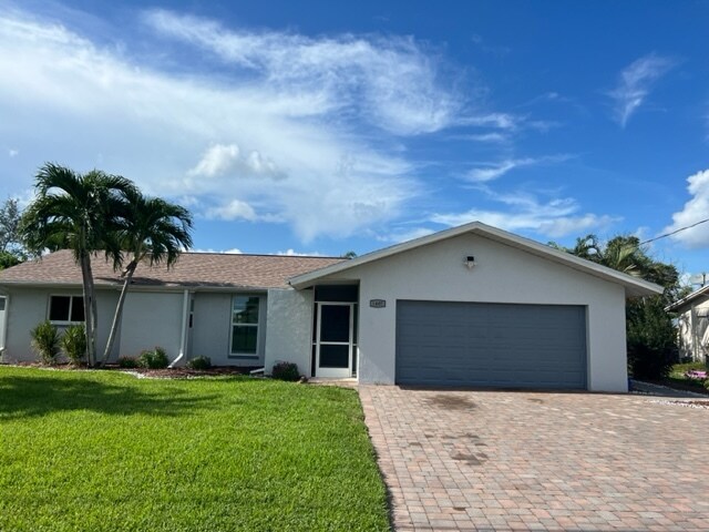 Beautiful, Well-Maintained 3-bedroom 2 bath in Cape Coral With Great Amenities. Freshly painted inside and outside. Tiles in kitchen, living room, dining room, breakfast knock. Wood floor in bedrooms. Kitchen has - glass-top stove, double door refrigerator, microwave & dishwasher, plenty of cabinets, a breakfast bar & eat-in area. Bathrooms have showers. Master bedroom has His & Her closets. Laundry with Washer & Dryer Hook-ups in promises. Two cars garage with remote garage opener. Big caged lanai part covered, and part is exposed to sun. Impact windows - no need to put up hurricane shutters. On City water and sewer. Small pets are welcome up to 25 pounds, $300 nonrefundable fee per pet is required on signing contract. Big fens backyard. Close to schools, shopping centers and restaurants. Contract is for minimum 1 year.