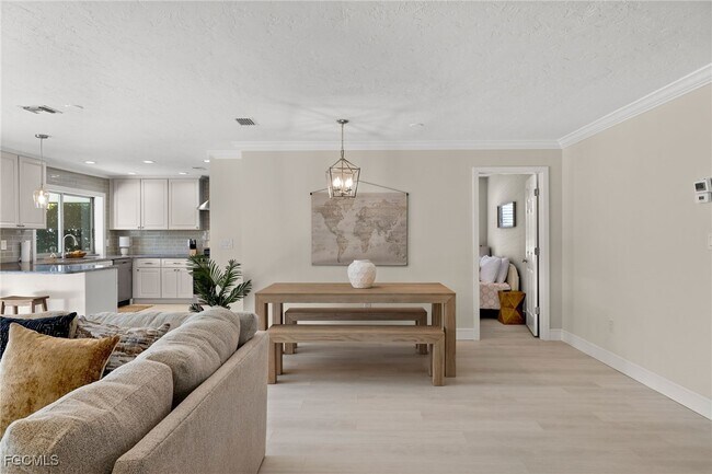Welcome to this beautifully remodeled and fully furnished 4-bedroom,2.5-bath pool home just steps from the Caloosahatchee River in one of Cape Coral’s most desirable neighborhoods. Designed for comfort and style,this residence offers an effortless move-in experience — completely turnkey with everything you need,from cookware and linens to tropical décor and poolside furniture. Step inside to a bright,open-concept floor plan that blends contemporary finishes with relaxed coastal charm. The living area features new flooring,recessed lighting in the kitchen,and modern neutral tones,all centered around sliding glass doors that open directly to the screened lanai and sparkling pool. The chef’s kitchen boasts stainless steel appliances,granite countertops,subway tile backsplash,and ample cabinet space — perfect for both everyday cooking and entertaining. The primary suite is a serene retreat with a canopy bed,ensuite bath,and garden views,while the additional bedrooms are thoughtfully furnished — including a bunk room that sleeps four,ideal for guests or family. Each bedroom offers its own unique style with modern ceiling fans,mounted TVs,and cozy designer touches. Outside,enjoy the best of the Southwest Florida lifestyle with a large screened-in heated pool,covered outdoor dining area,and lush tropical landscaping for privacy. The quiet residential streets here in the waterfront neighborhood of Savona ensures peace and relaxation. The home also features an indoor laundry room,newer roof,and ample parking. Internet is included in the rent; tenants cover utilities,pool and lawn care. Available for an ANNUAL LEASE with first month’s rent,security deposit,and background/credit check required. Dogs welcome with approval and additional fees. Owner may consider and negotiate a 3 MONTH LEASE or longer at a higher monthly rate. Located just minutes from the Yacht Club,Jaycee Park,Tarpon Point Marina,and Cape Coral’s best waterfront dining,this home offers the perfect blend of convenience and coastal living. Whether you’re seeking a furnished executive rental or a longer-term tropical escape,this home is a rare find — fully equipped,beautifully decorated,and move-in ready today.