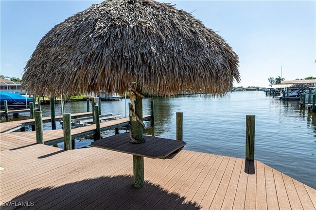 Beautifully Furnished Cape Harbour area, Gulf Access, Pool Home!!! Enjoy LONG WATER VIEWS down an extra wide 200+ foot Gulf Access canal. This home features an Open Floor plan, 4 Beds/2 Full Baths and a 2 Car Garage. The Stunning kitchen is remodeled with granite counters, updated wood cabinets, back-splash, island, and pantry. Open concept living room overlooking panoramic water views from the sliders and windows! High cathedral & tray ceilings, 7 1/4 crown molding, and custom lighting & fans. Master bed with high tray ceilings & overlooks the water. Updated Master bath with granite counters, glass walk-in shower, and jetted tub. Spare bedrooms & full guest pool bath. Solar heated pool overlooking breathtaking water views. Great vacation house every day! BOATERS 680 ft wrap around dock with 10K lift. Tiki Hut to for relaxing on the water in the coveted Cape Harbour area of SW Cape Coral. May 1-Nov 30 is $220/night or $5,000/month. Dec 1 - April 30 is $9,000/month. A discount may apply if rented longer than 3 months. Basic covering for utilities for water $50 per month and for electricity $100 per month.