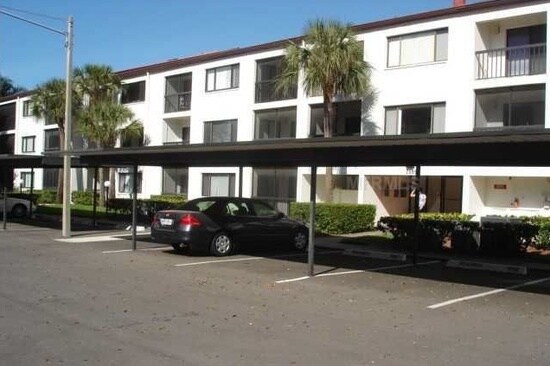 COMPLETELY RENOVATED in 2014. 55+ CONDO (Bldg 8) with 2 bedrooms 2 bath and 2 balconies on the first floor 1105 sq feet. New Wood floors New Paint throughout. New Bathroom New Kitchen and GRANITE tops. Large walk in closet in bedroom. Large Linen closet off hallway. Super Nice! Sliding Door from living room and bedroom out to balcony. Must see this condo! Covered parking washer & dryer basic cable water and sewage included. Great location walking distance to restaurants shopping library and Westfield Shopping Mall. A short drive to Clearwater's most beautiful beaches golf courses and spring training stadiums. Large community pool tennis courts. Non- smokers No pets. Available July 1st, 2025