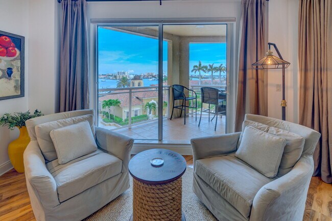 Bellissima at Belle Harbor -- 3 BR/2BA, Steps from the Beach Available Sept 13-October 31, 2022, and December 1-31, 2022 (already rented Jan-April of 2023 and Jan-April of 2024) Note: The pool/spa are being resurfaced in September and the first half of October. During this time, we will offer a discounted rate of $5,000/month. Minimum of 30-day lease. Sunshine, beach, dining, shopping, entertainment … what more could you want? Belle Harbor provides all that (and more!) in a luxurious Mediterranean-style condo community in Clearwater Beach. We’ve named our condo “Bellissima” which means “very beautiful” in Italian, and we know you’ll agree that the upscale condo, building, grounds, and the entire experience match that description. Belle Harbor is just steps from the beautiful white sand beaches of Clearwater Beach and is in the heart of the beach community. The 1,547 sq. ft. condo is on the 5th floor and includes two bedrooms, a den, two bathrooms, kitchen, dining room, living room, laundry room, and a balcony. The condo is south facing, which means you will enjoy the sunshine and beautiful views overlooking the clubhouse, pool, private marina, and intercoastal waters. The balcony is accessible from both the living room and master suite and provides stunning sunrise views. The master suite features a large walk-in closet with a King bed, a TV with DVR and Roku, and a garden tub and walk-in shower. The guest suite has two extra-long twin beds (which we will combine into a king-size bed if you prefer), a shower/tub combination, and a TV. The den includes a comfortable queen-size pull out couch, a desk, and French doors for privacy. It can serve as a perfect office space for a remote worker. The fully-functioning kitchen features wood cabinets with quartz countertops, stainless steel appliances, and all the pots, pans, dishes, and utensils you’ll need to make and serve your own meals or heat up leftovers from any of the 25+ restaurants within walking distance of your condo. The living room features comfortable seating and a TV, cable, DVR, and Roku. We provide a hotel-style safe and Wi-Fi is available throughout the condo. The laundry room includes a full-size washer and dryer. We also supply a beach chairs, umbrella, cooler, and beach towels that you are welcome to take to the beach or pool. The Belle Harbor complex includes many amenities that are available to our guests. These include a large heated pool, jacuzzi, clubhouse with a caterer’s kitchen, outdoor dining/grilling space with two fireplaces and TVs, billiard room, game room, and a fitness center with sauna, steam room, and men’s and women’s locker rooms. There is also 24-hour gated security and an assigned under-building parking spot (plus guest spots). The condo association requires that potential guests complete an application with a $100 processing fee. Bookings must be made at least 10 days in advance to accommodate the approval process. You must be at least 25 years of age and the person booking must be one of the occupants. Sorry, but no pets and no smoking allowed inside the condo. The State of Florida/Pinellas County require a 13% sales/use tax on any rentals for a period of less than 6 months. Maximum of two dogs with a combined weight of 80 pounds. Additional non-refundable pet fee of $300 for any pet. (Max. of two dogs with a combined weight of less than 80 pounds.)