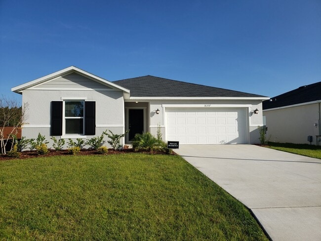 Welcome to this beautifully maintained home featuring a desirable split floor plan and expansive, tiled living areas. The open kitchen boasts white cabinetry, a large island, and stainless steel appliances, flowing seamlessly into the dining and living rooms—perfect for everyday living and entertaining. The generous primary bedroom includes a walk-in closet and an en-suite bath with dual sinks. A large laundry room with washer and dryer provides added convenience. Step outside to the covered patio, ideal for grilling or enjoying relaxing fall evenings. Lawn fertilization and pest control are included. The Sawgrass Bay community offers a refreshing community pool and well-kept common areas. Application fee is $65 an adult. Applicant will be able to start lease within two weeks.