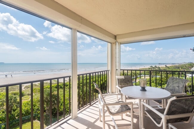 Best view on the beach! This direct oceanfront 2-bedroom, 2 bath end-unit features an open floor plan, split bedrooms with balconies on both sides, spacious kitchen, bright windows, 2nd family room for guests, walk in closets, large separate laundry room and all fully furnished. Relax and enjoy spectacular views north and south from your 250 square foot balcony with plenty of room to entertain. Private 1 car garage. Wi-Fi and basic cable included! Day watch the ocean, cruise ships passing by, Cocoa Beach pier and rocket launches! This highly desirable, building is quiet with owners occupancy at 90%. Guest king bed converts to 2 twins. Don't miss this rare opportunity to live in Las Palmas! 6 month minimum rental.