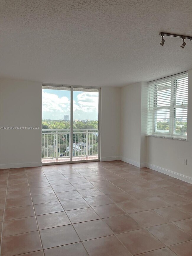 Great Corner unit w/Wrap around balcony for stunning views of the Miami Skyline. Freshly painted.Tile throughout. HUGE bedroom with oversized walk-in closet. Largest 1 Bed unit. Building features 24/7 concierge, pool & gym. Webpass high speed internet, water & sewer & trash pick-up & pest control included w/ rent. Assigned covered parking #297. Short walking distance to shops, great restaurants, supermarkets, galleries & Short ride to airport. Centrally located near Brickell, coconut grove, downtown. Visitor's parking available. On-site management. Fast move-in. A must see.